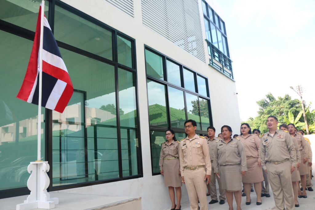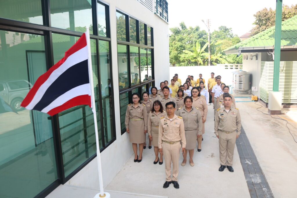 On Monday, 29 September 2025, Mr. Ki่jsart Onngernthayakorn, Director of the Office of Agricultural Economics Region 10, presided over the commemorative activity held on the occasion of Thai National Flag Day 2025. The event was attended by civil servants, government officers, and staff members, who collectively participated in the flag salutation ceremony and sang the Thai national anthem at 08:00 a.m. in front of the new building of the Office of Agricultural Economics Region 10.