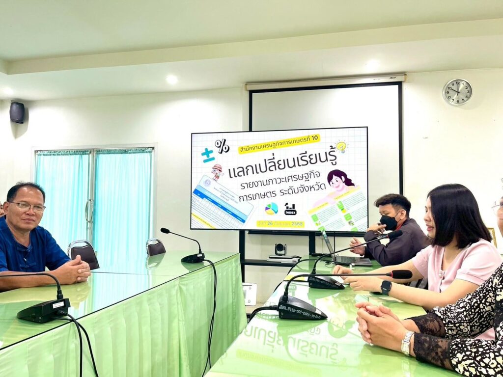 On Tuesday, September 23, 2025, the Office of Agricultural Economics, Zone 10 (OAE 10), organized an internal knowledge transfer and sharing activity on the topic of the “Provincial Agricultural Economic Report.” The event was presided over by Mr. Kijsart Onngernthayakorn, Director of the Office of Agricultural Economics, Zone 10, at the meeting room of the Office of Agricultural Economics, Zone 10