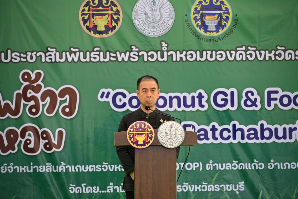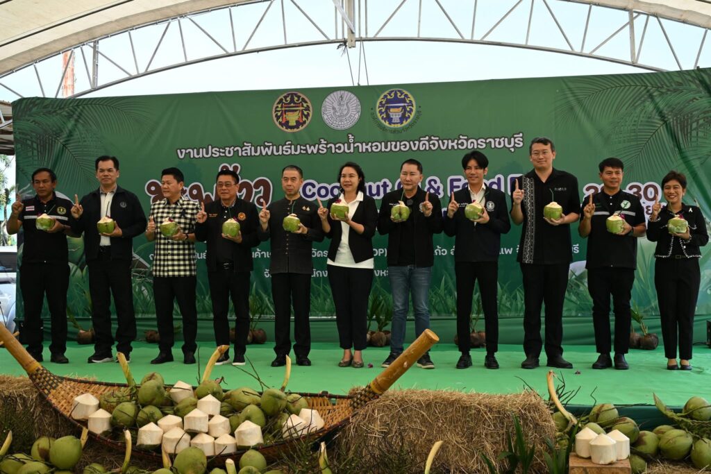 The event was presided over by Mr. Komgrit Charoenphattanasombat, Deputy Governor of Ratchaburi Province. Organized by the Ratchaburi Provincial Agricultural Office, the fair aims to promote and raise awareness of Ratchaburi aromatic coconut, a distinguished agricultural product widely recognized for its quality.