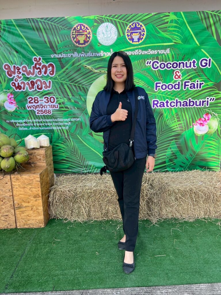 On Friday, 28 November 2025 at 10.00 a.m., Mr. Kijsart Onngernthayakorn, Director of the Office of Agricultural Economics Region 10 (OAE 10), Ratchaburi Province, assigned Ms. Siriwat Suwannasri, Senior Policy and Planning Analyst, to attend the promotional event for Ratchaburi’s renowned aromatic coconut under the theme “Coconut GI & Food Fair @ Ratchaburi.” The event is part of the Agricultural Development Project for Value Addition of Ratchaburi’s Premium Agricultural Products for Fiscal Year 2026.